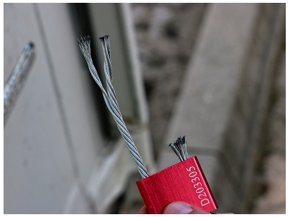 Zodra de kabel is doorgeknipt is de Cable Seal niet meer bruikbaar doordat de kabel begint te rafelen.