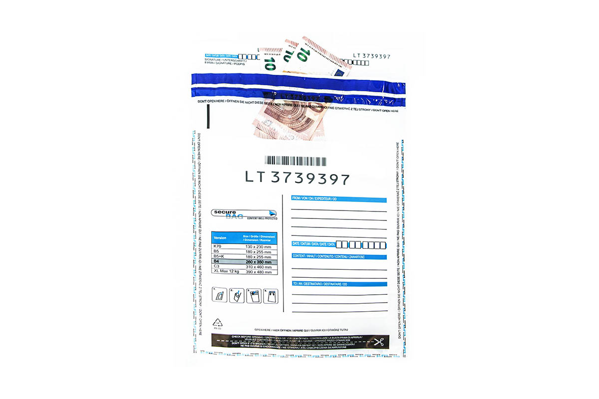 Die Siegelbeutel (auch als Sicherheitsumschläge oder Sicherheitstaschen bekannt) eignen sich für den Versand und die Aufbewahrung wertvoller Güter. Durch die Verwendung von Siegelbeuteln wird eine Diskussion mit Kunden oder Behörden vermieden.