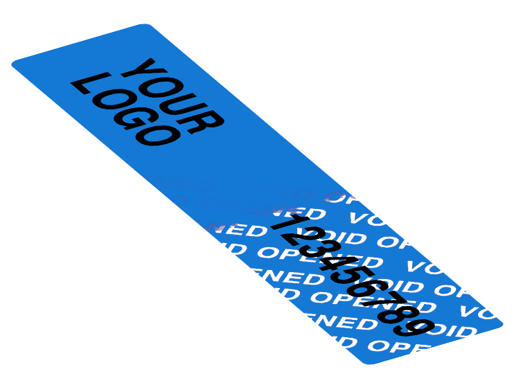 VOID-Sicherheitsetiketten 150×30 mm – Blau – NON RESIDUE mit individuellem Logo